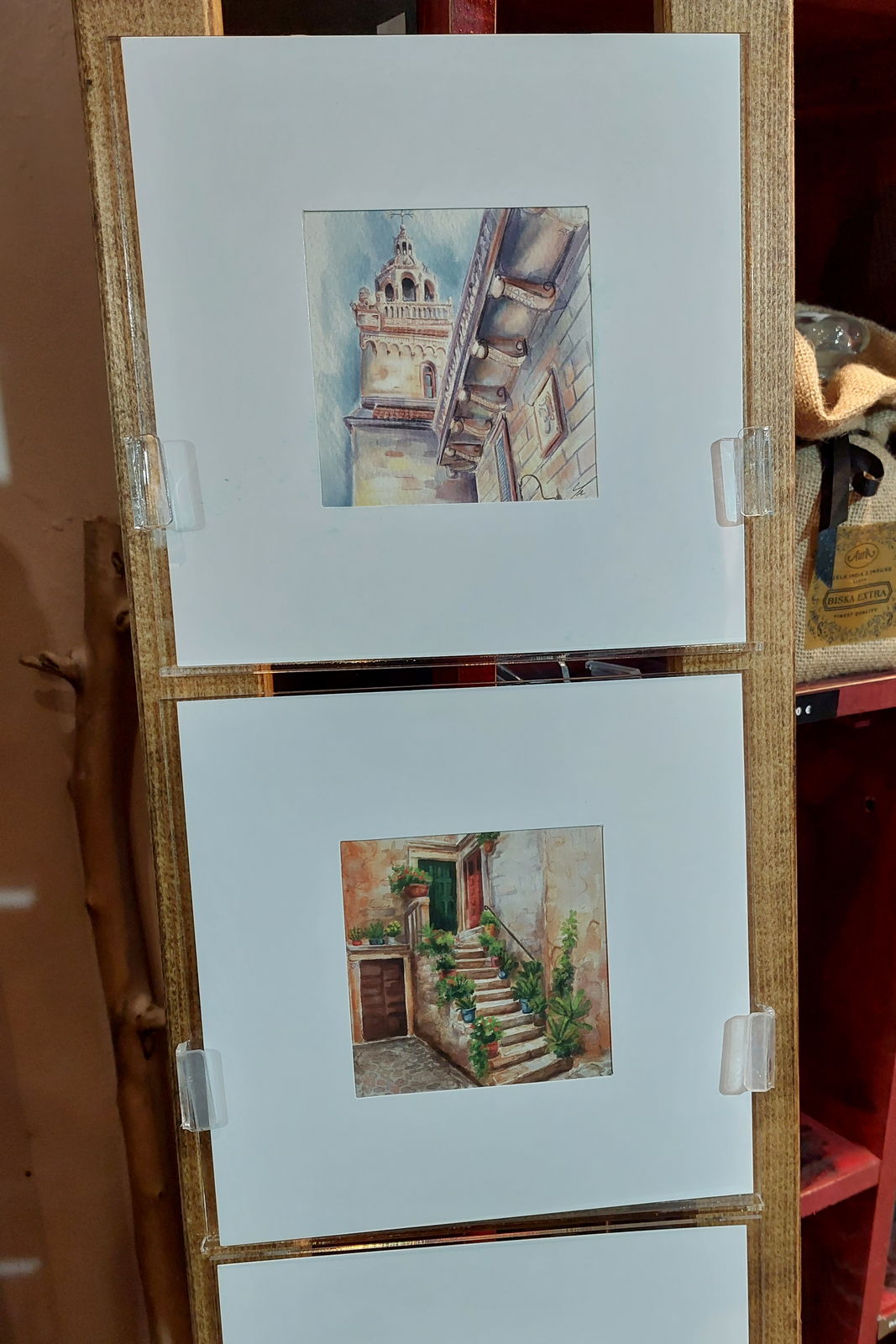 Akvareli Reprodukcija umjetničkih slika lokalnog umjetnika, rađeno tehnikom vodenih boja – aquarela u dimenzijama 20 x 20 cm i 40 x 20 cm. Ostale usluge Nakit Modni dodaci Keramika